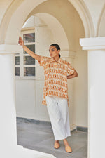 Spread collar patterned mustard color women top is exquisitely crafted from 100% handwoven cotton. The beautiful traditional phulkari work highlights the product in an elegant way. You can wear it as a shirt, or simply layer it with jeans and tights