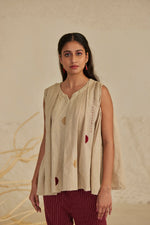 The relaxed fit beige color top is made of 100% handwoven cotton with phulkari moon motifs stitch at the front. This top can be worn with jeans, skirts and leggings.