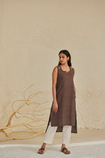 Brown Cut Sleeves Cotton Kurta