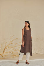 Brown Cut Sleeves Cotton Kurta with White khaddar Pants