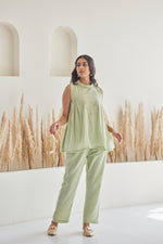 This Pista Green Color Women Top is a 100% Handwoven Cotton with contrast phulkari stitch work and french knots. It has a close neck cut sleeves and it's comfortable to wear as well as easy to take care of.