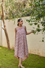 This pale pink cotton handwoven ikat fabric women dress with strapes is a comfort fit casual wear. It comes with pockets in front, which add a touch of elegance to this beautiful dress.