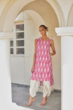 Pink Ikat Cotton Kurta & Dhoti Set