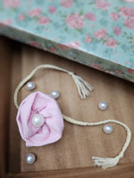 Pink Ruffle Rose Rakhi & Upcycled Pouch (Set of 2)