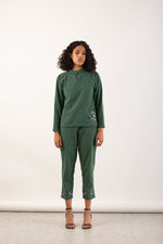 Inspired by the marine life, Twin Fish Top features a double Matsya motif with seaweeds. The top has been hand embroidered using traditional techniques of Phulkari with colours inspired by the natural and serene tones of the underwater life. Base fabric is handwoven with recycled cotton & recycled polyester.