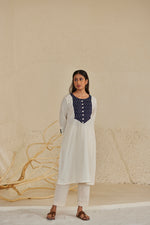 White Cotton Straight Kurta with Ikat Panel